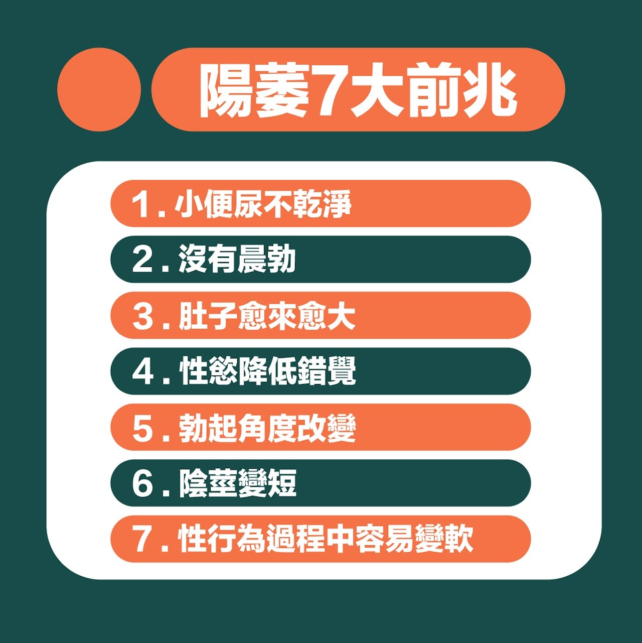 如果偶爾出現不舉,其實不用過份憂慮,可以先觀察一下自身的精神、身體狀況是否有過勞跡象。但若然時常出現以下7種情況,各位男士就需要格外留神。