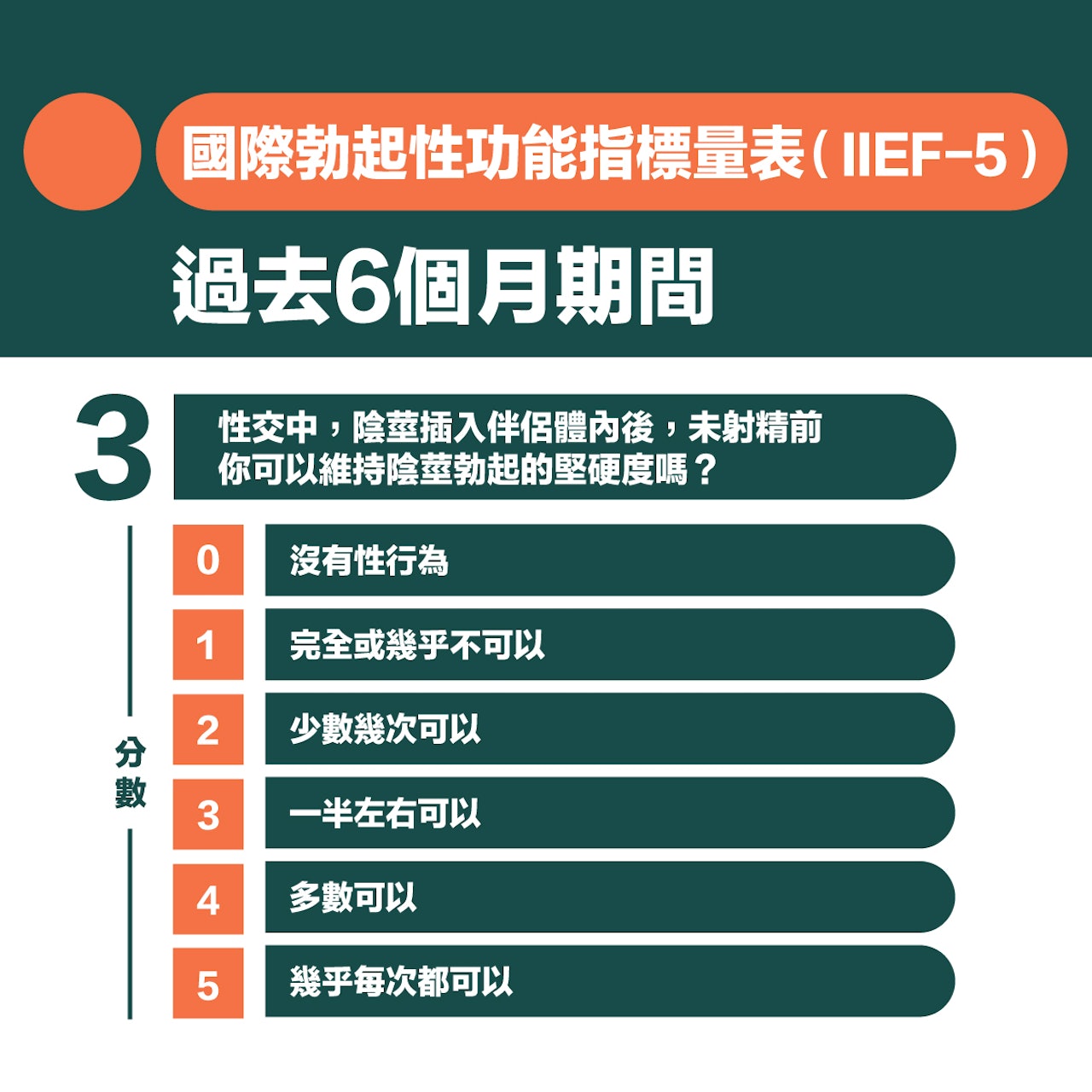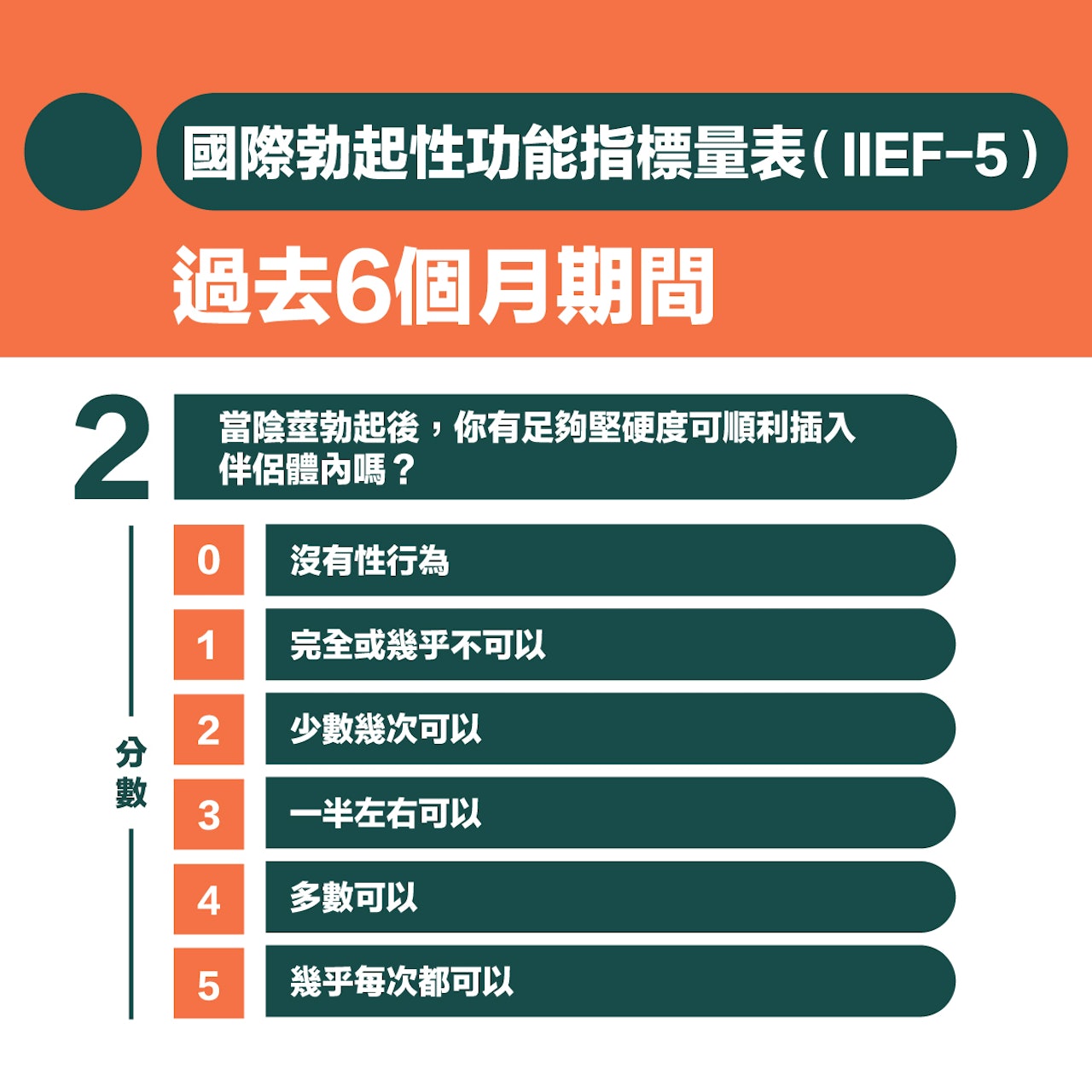 簡單5條問題 自我評估勃起功能